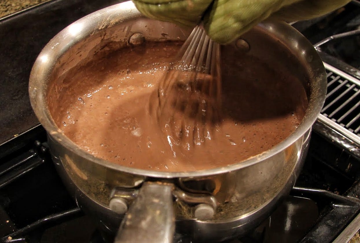 What we have here is deep, dark, creamy, chocolate goodness that is simple enough for an after-school or weeknight treat but decadent enough to dress up and serve to dinner guests. I find my girls are highly motivated to help with the stirring.