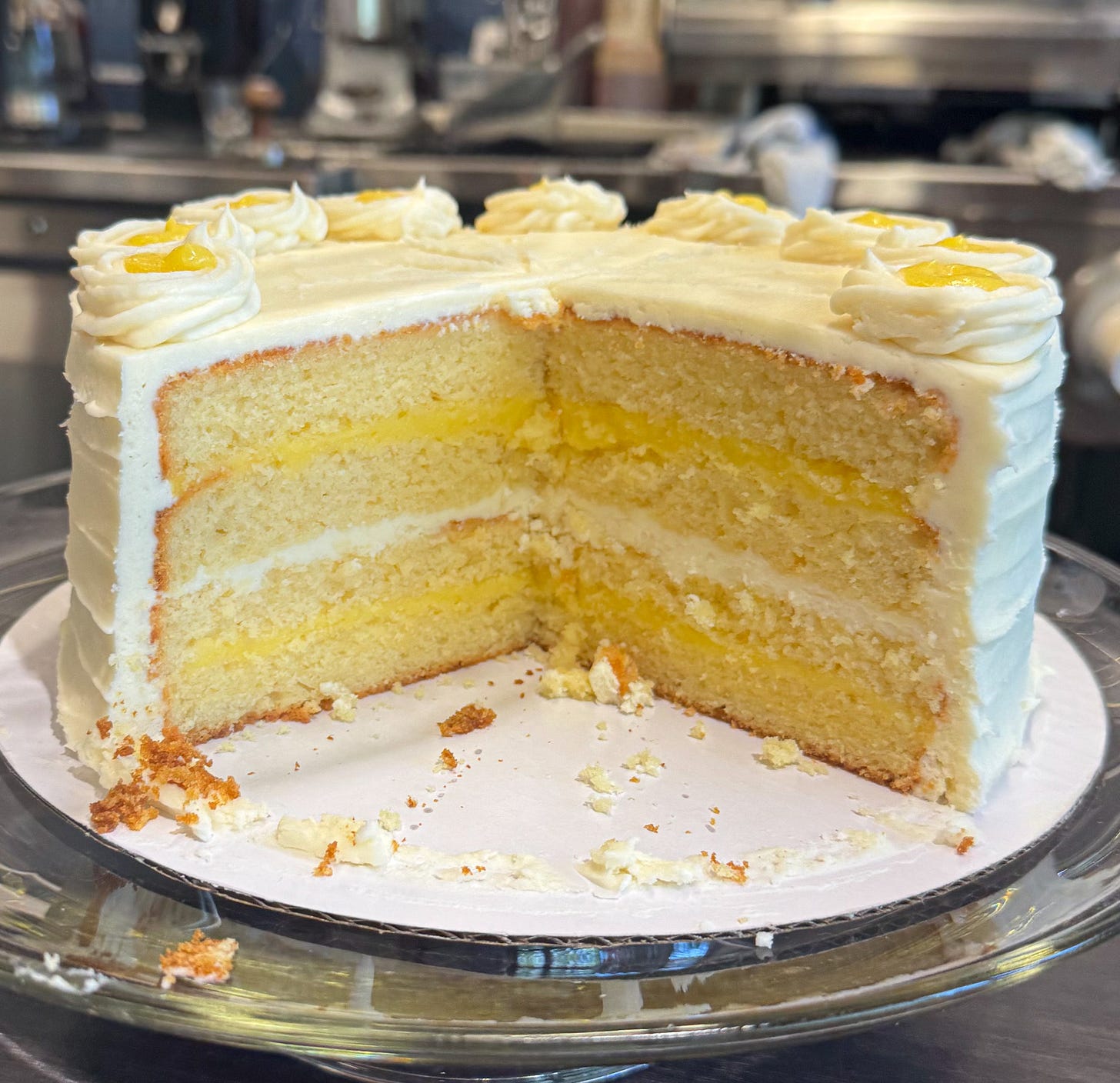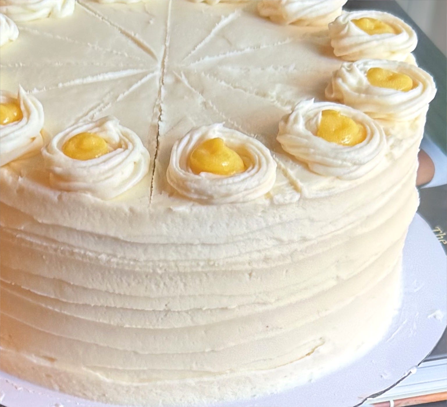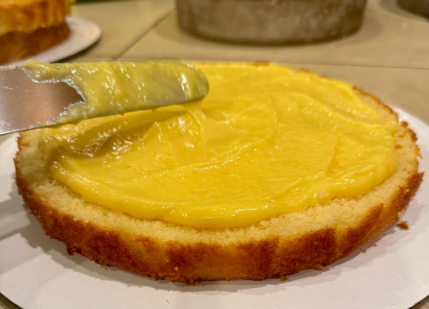 After many trials, which yielded some small successes but mostly frustrating dissatisfaction, I finally achieved the consistency, color, and flavor of lemon curd that is suitable for creating a pretty layer of filling in a cake. Spoiler alert: I had to use cornstarch. I didn’t want to, but after trying several different recipes online that promised to be thick enough, I ended up with delicious curds that sort of melted into the cake layers. The flavor was there, but the presentation was not up to my standards. So, I did what I often do and took the best components of the different recipes to come up with my own.